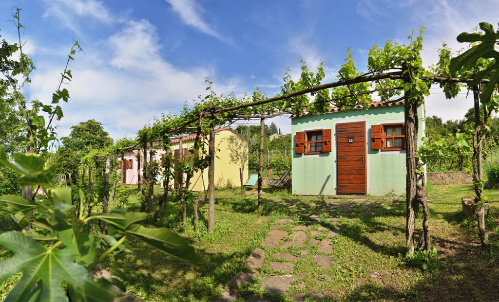 Kućice slovenske Istre smještene su usred vinograda i nude prekrasan pogled na Koparski i Tršćanski zaljev. Odlikuju se karakterističnom istarskom arhitekturom te su opremljene originalnim namještajem s kraja 19. i početka te sredine 20. stoljeća. Svaka kućica u svojoj unutrašnjosti skriva dio povijesti slovenske Istre i priče Šavrinki. Zajedničke kupaonice nalaze se 30 metara dalje.